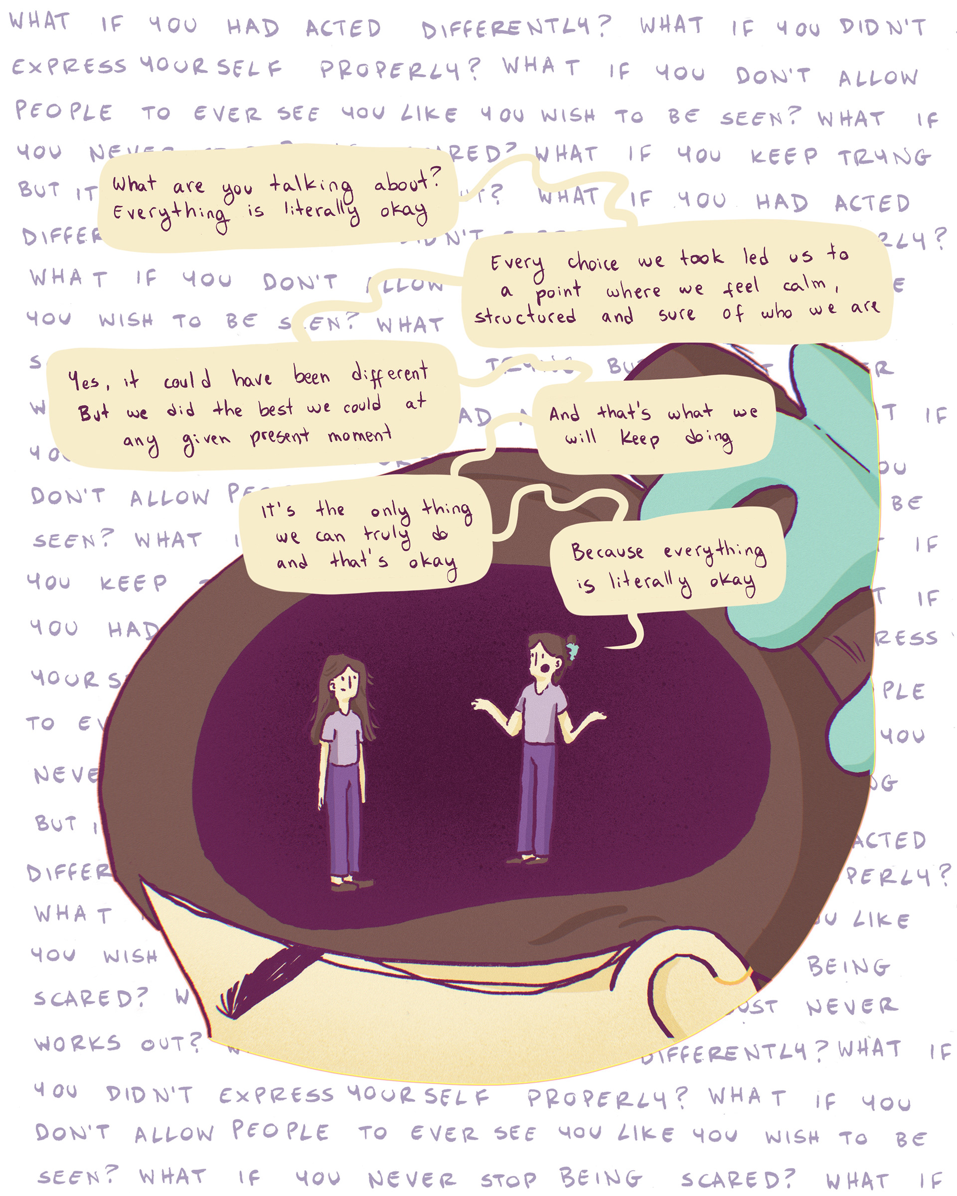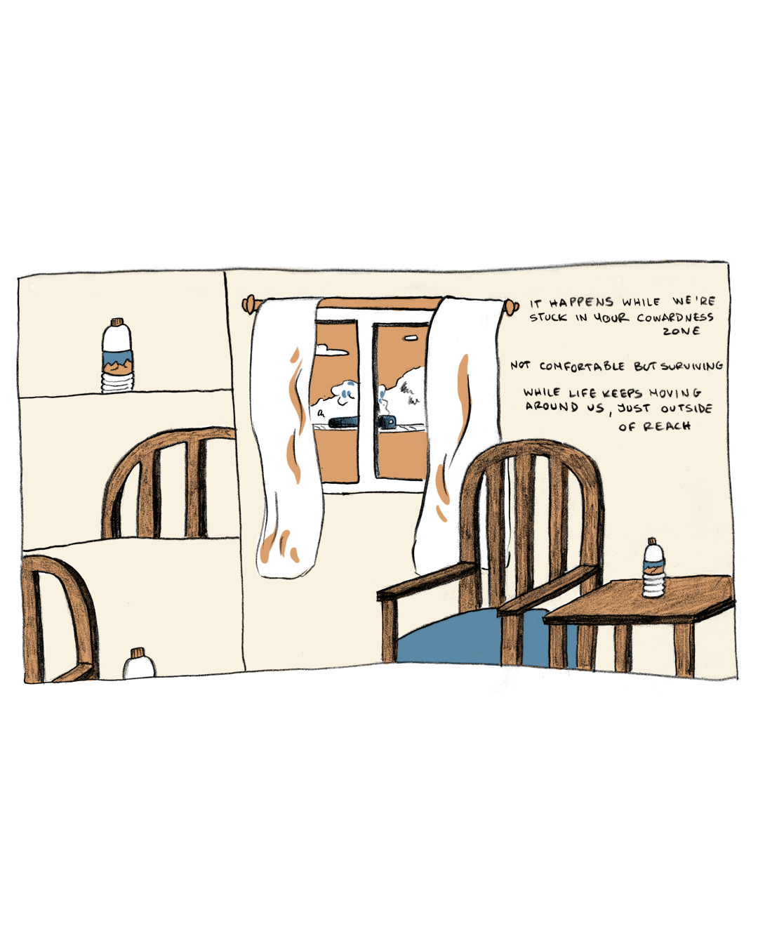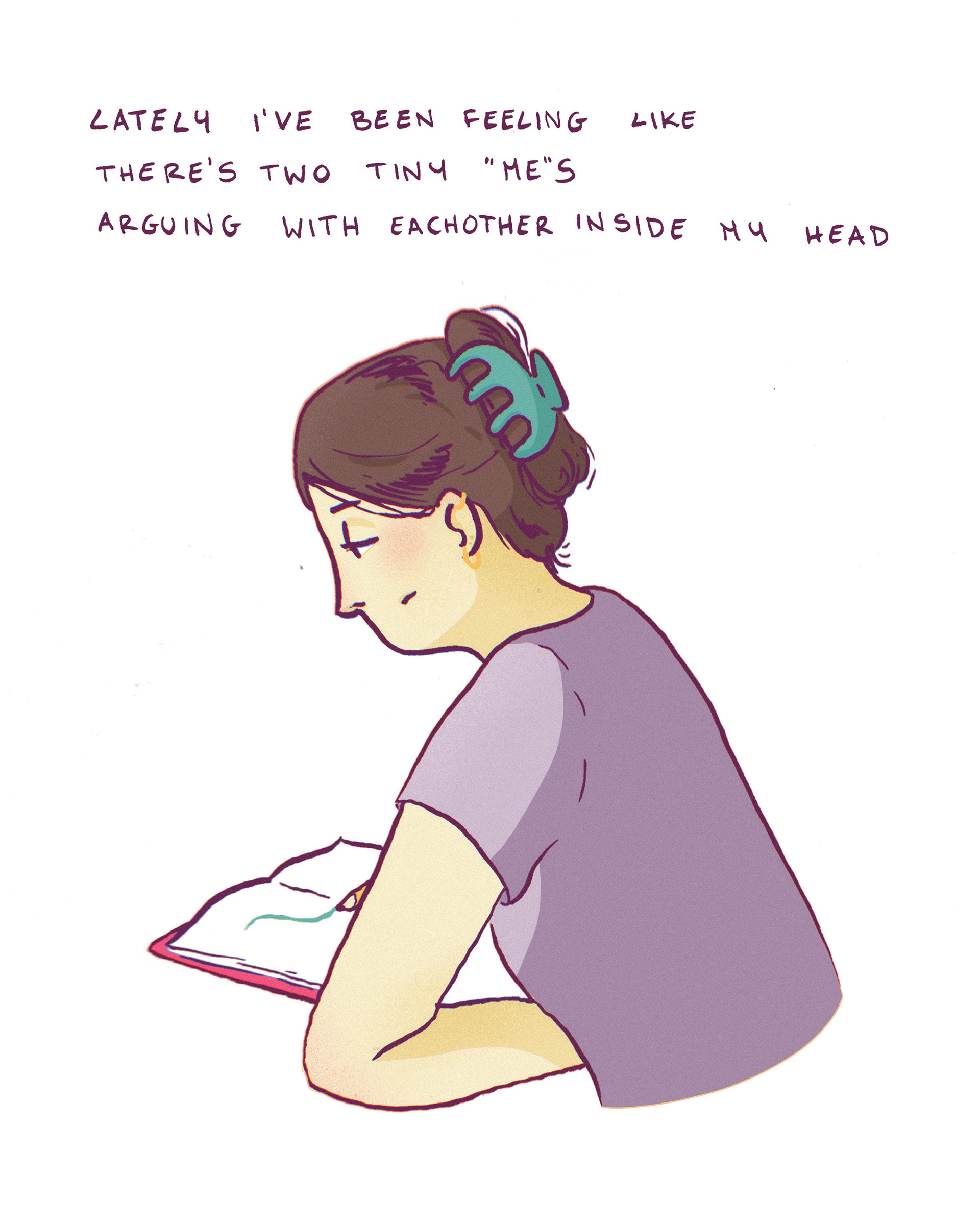 Set of panels exploring a moment of personal intrusive thoughts I was having at the time.