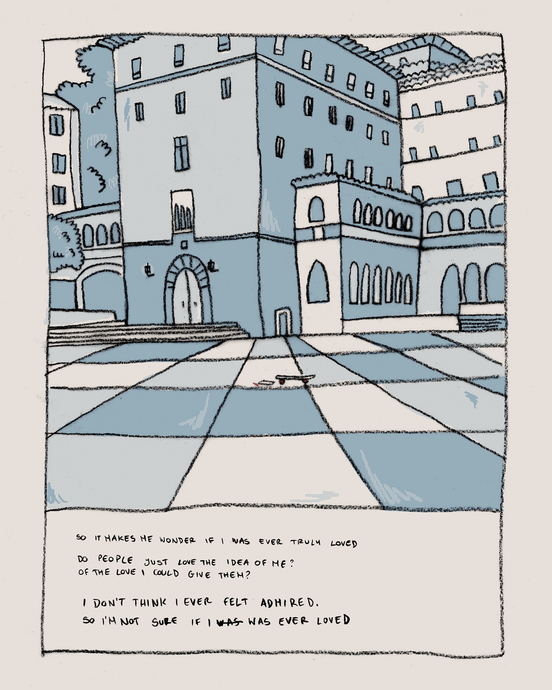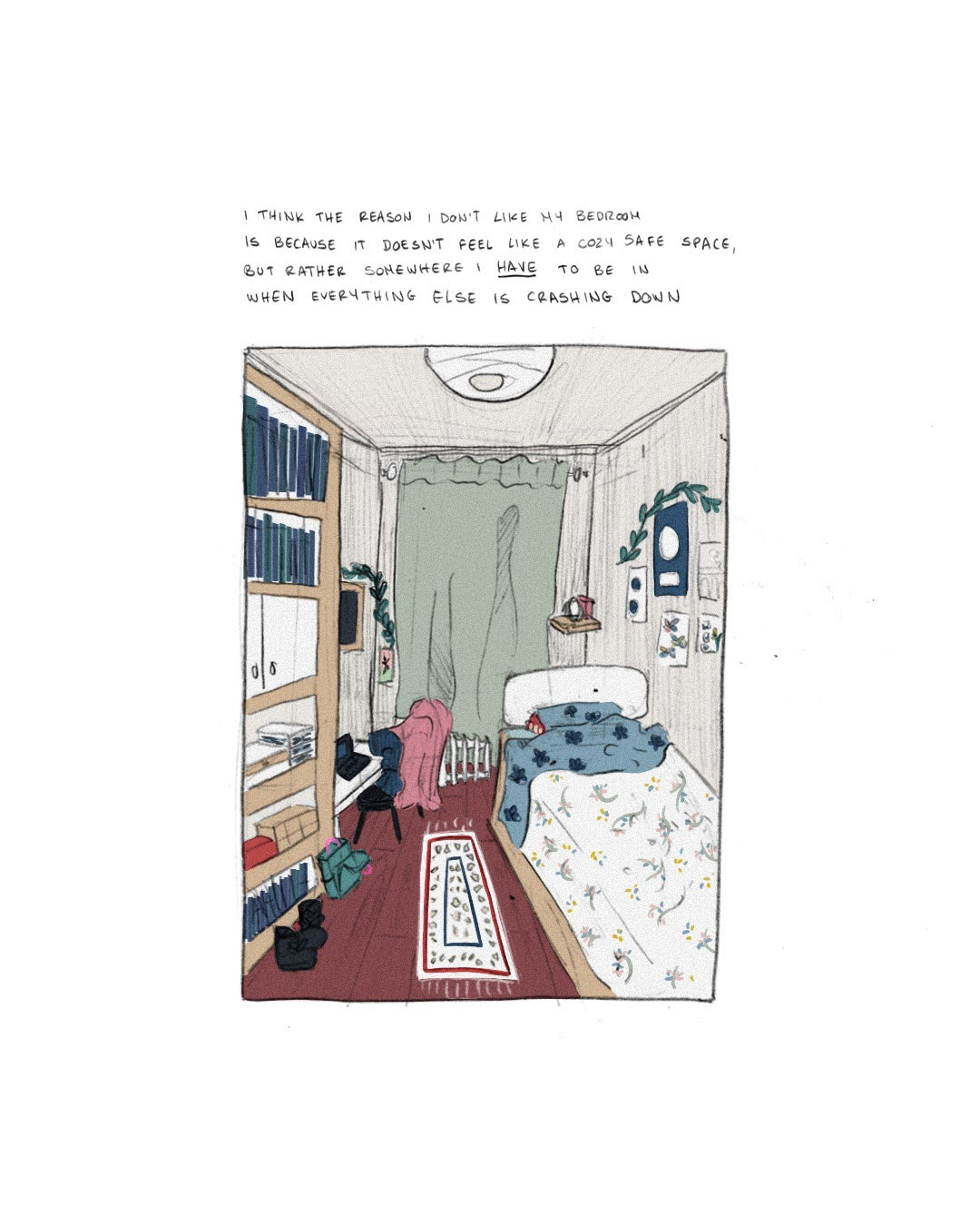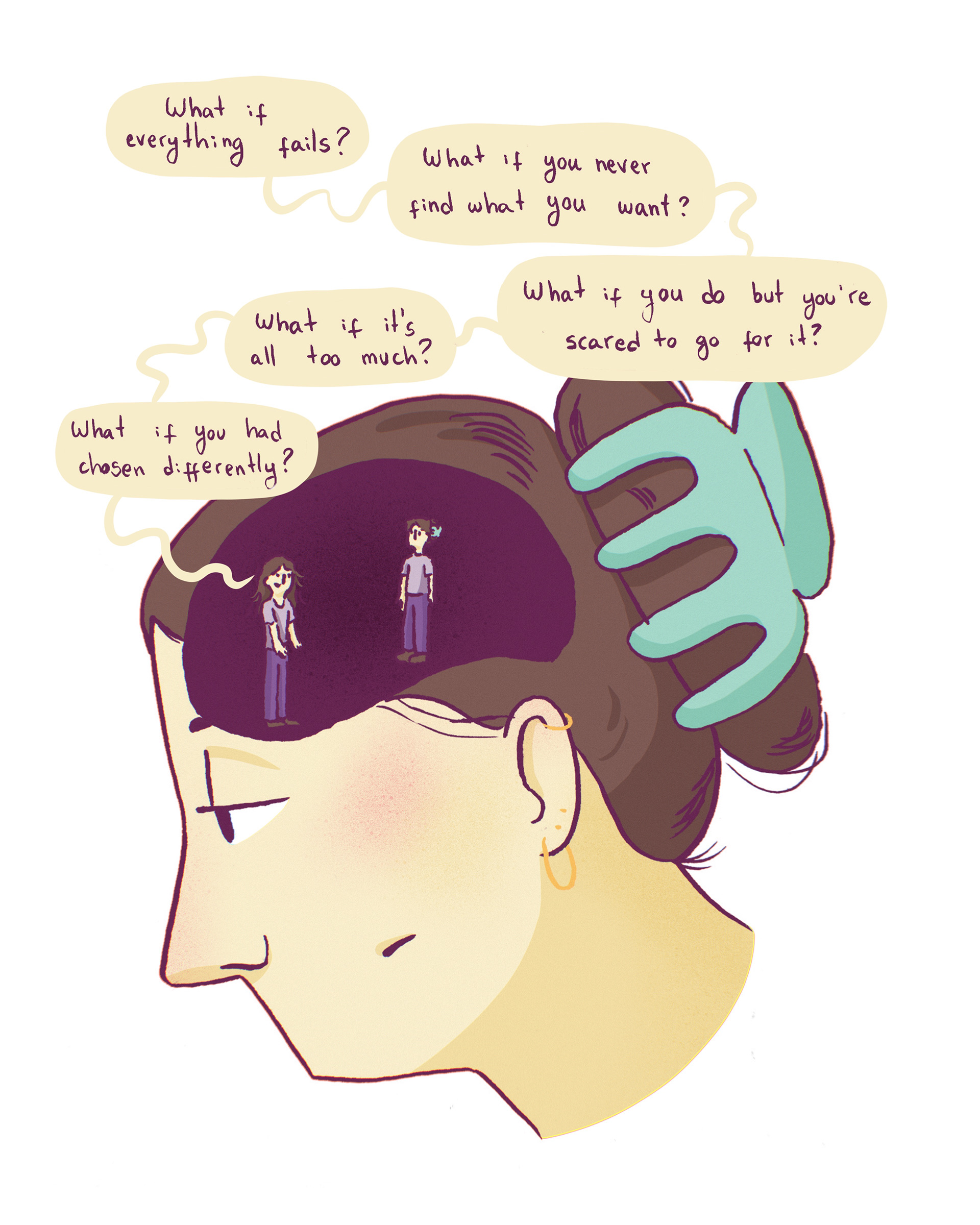 Set of panels exploring a moment of personal intrusive thoughts I was having at the time.